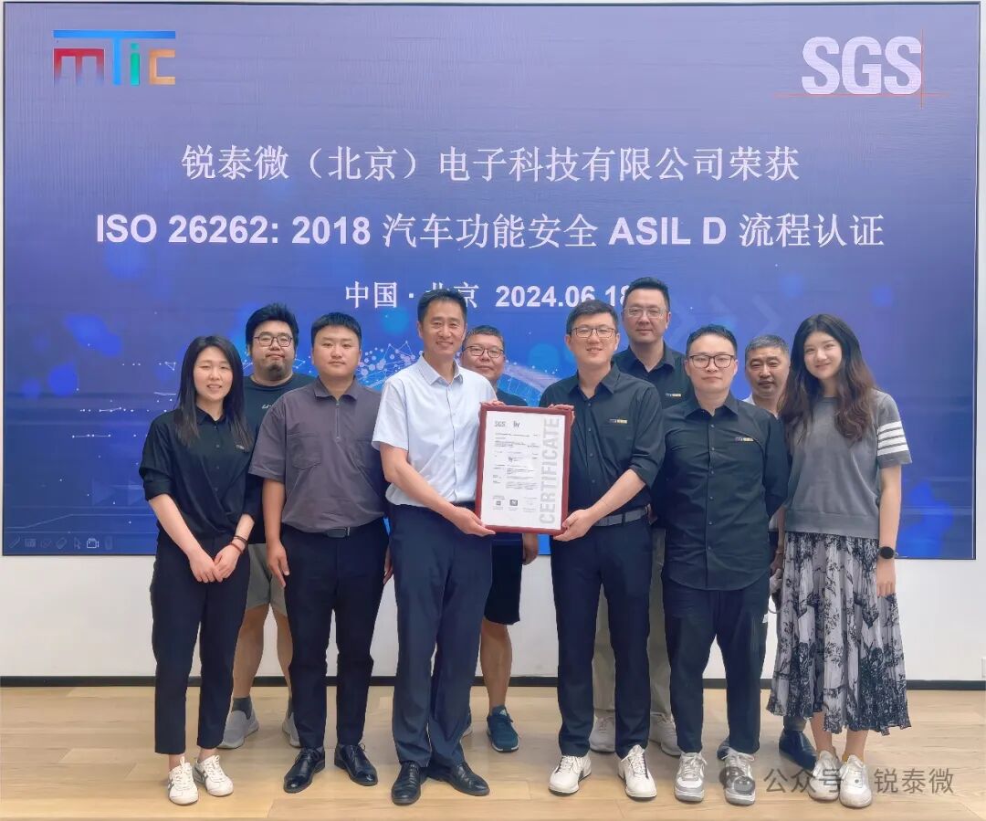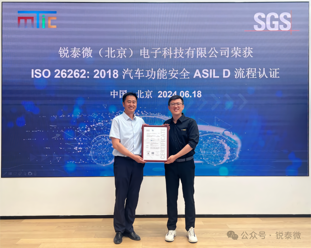 SGS为锐泰微颁发ISO26262:2018功能安全ASIL D流程认证证书