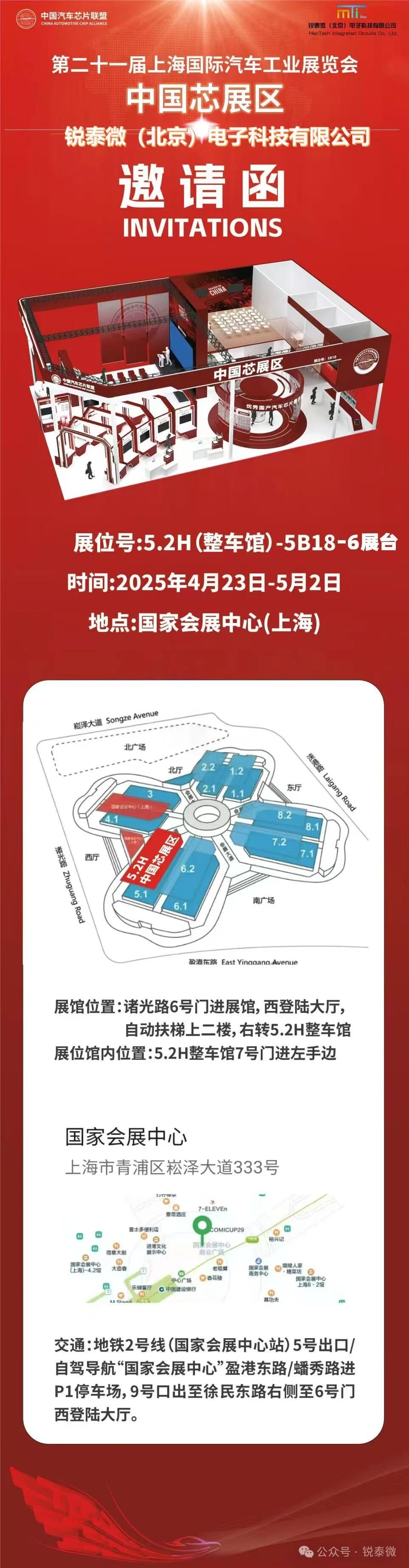第二十一届上海国际汽车工业展览会(以下简称:2025上海车展)于2025年4月23日至5月2日在国家会展中心(上海)举行。2025上海车展共邀请到来自26个国家和地区的近1000家中外知名企业参展,展出总面积超过36万平方米,参展国别范围更广,规模再创新高。锐泰微C³ Lync SerDes芯片在本次车展中亮相。